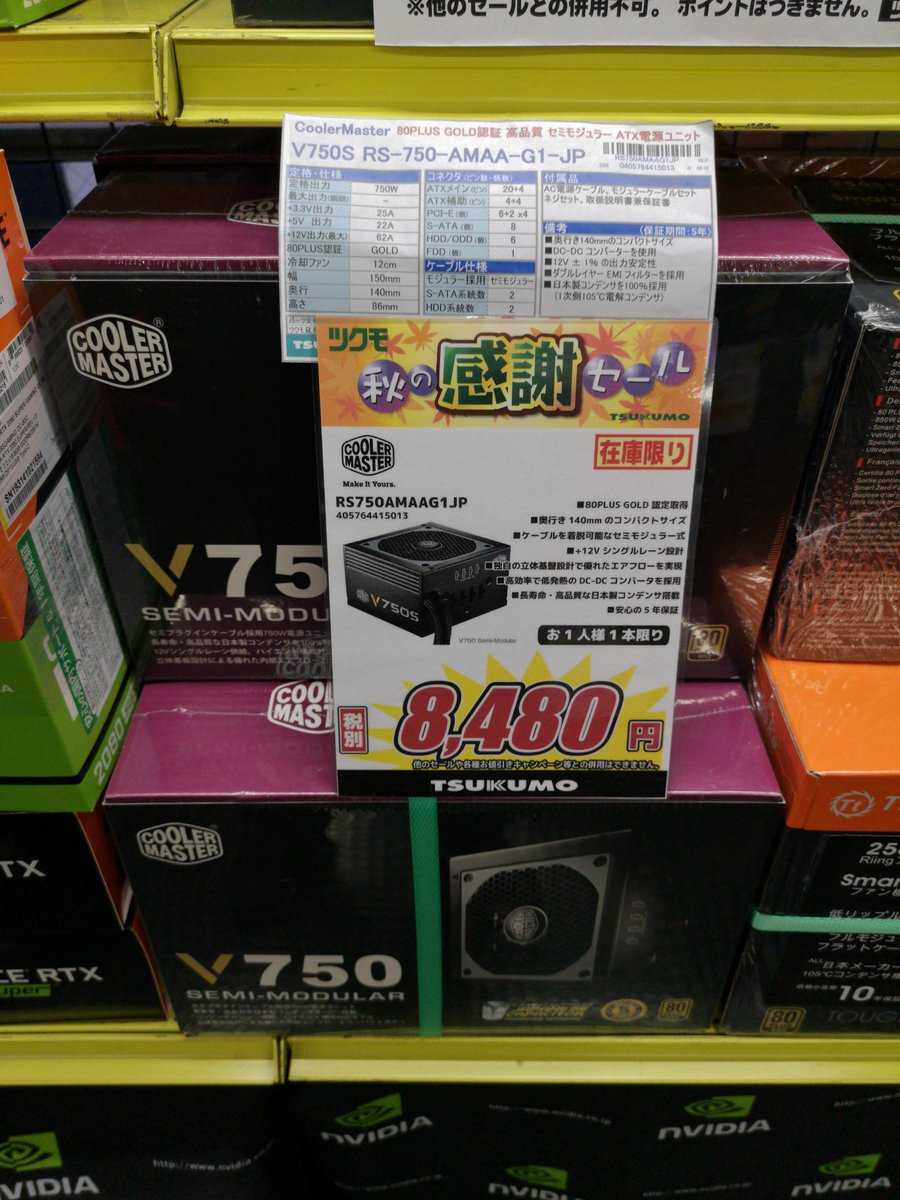 ট ইট র Tsukumo Ex ツクモex 5f お買い得なcoolermaster製の電源ユニットが再入荷しました 80plus Gold認証 日本メーカー製コンデンサ100 採用 5年保証付きとなっております Coolermaster V750 Semi Modular Rs750 Amaag1 Jp 税別8 480円 在庫